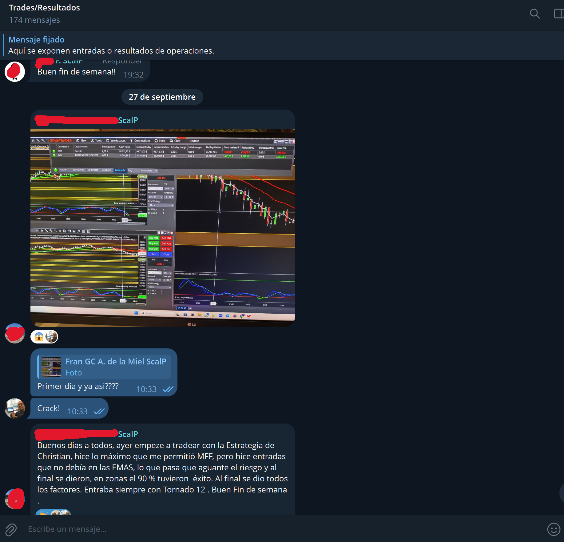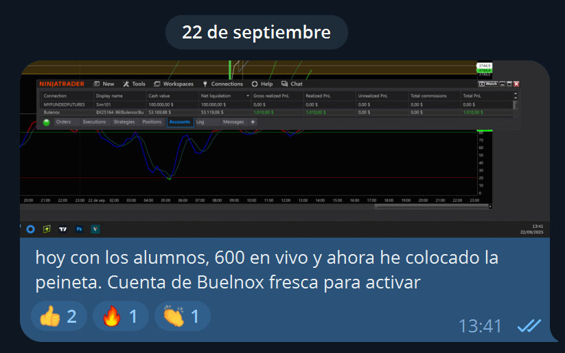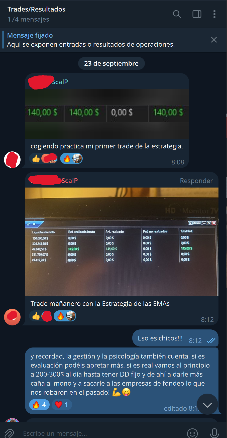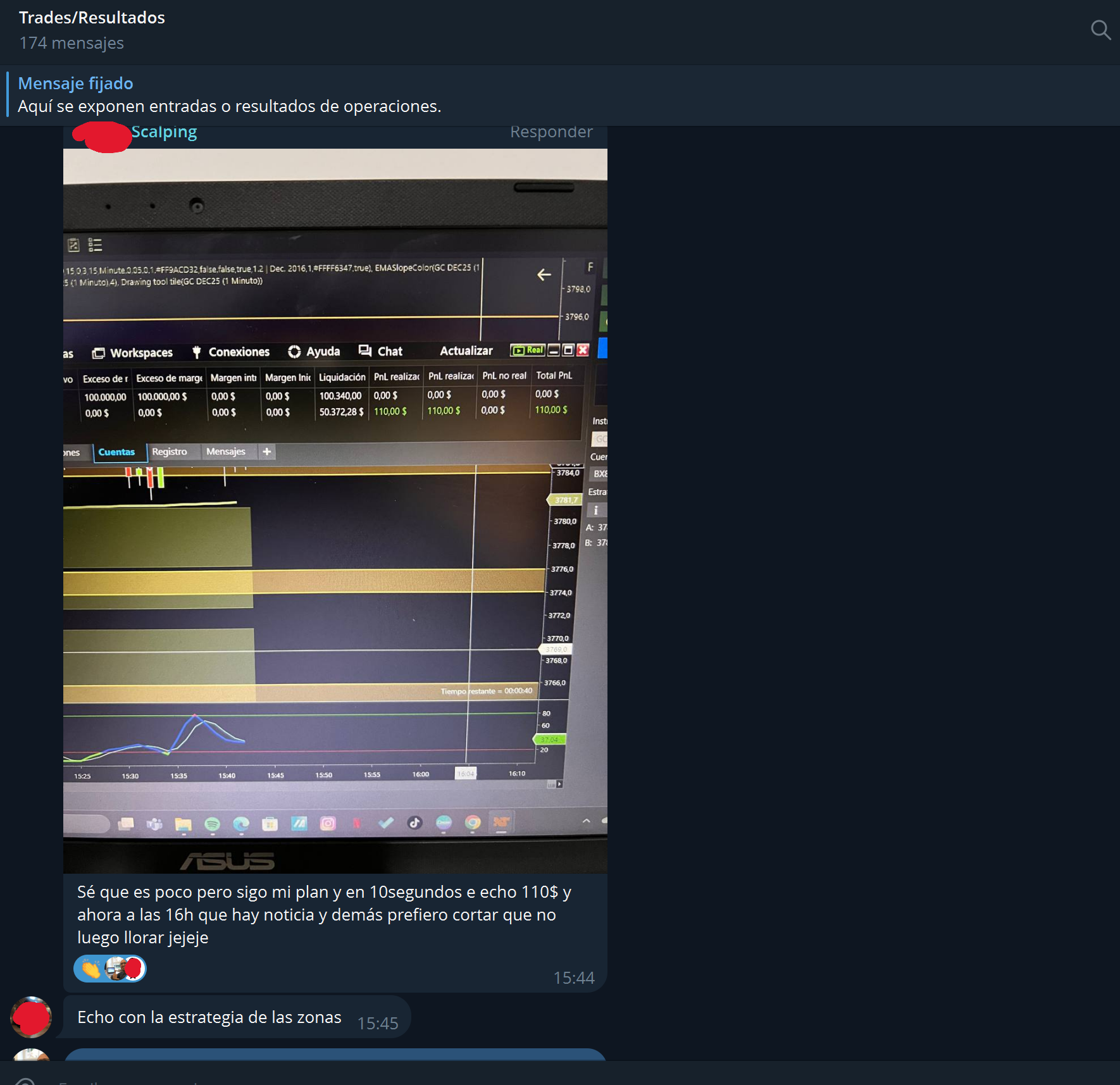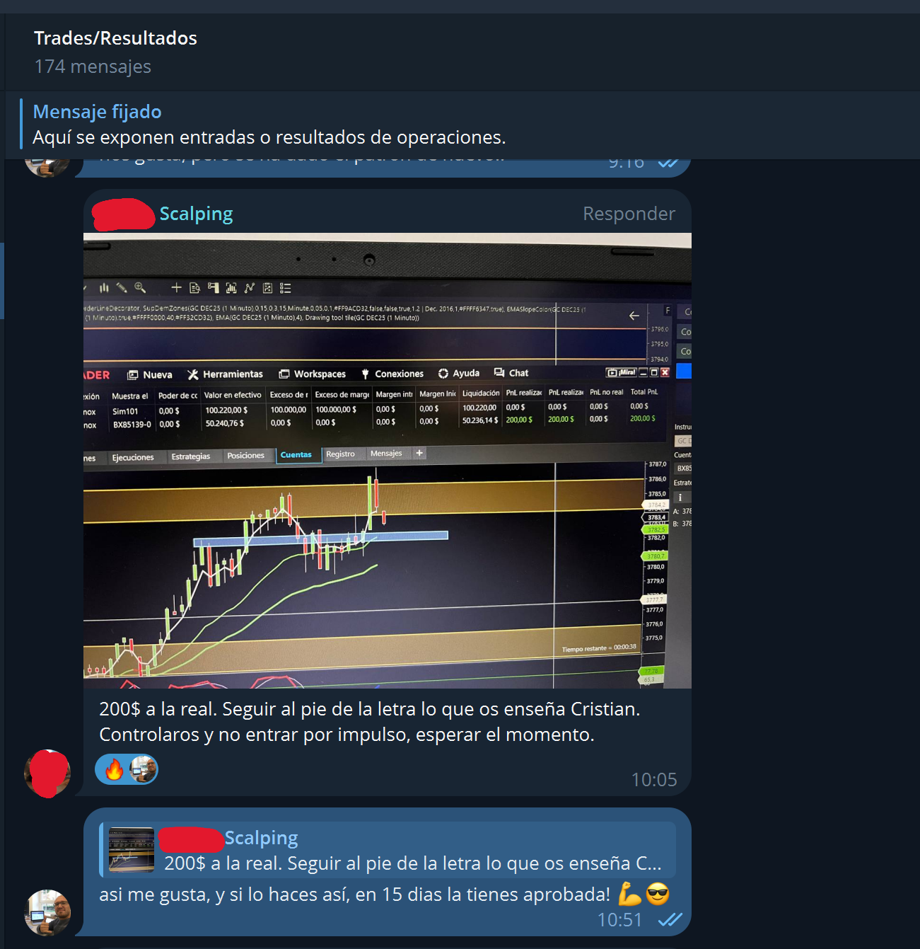 - Aquí puedes cambiar tu rutina, mejorar tus estadísticas, aprender scalping de verdad, aprobar cuentas de fondeo como nadie y retirar dinero cada mes (por no decir cada semana o incluso a diario…).