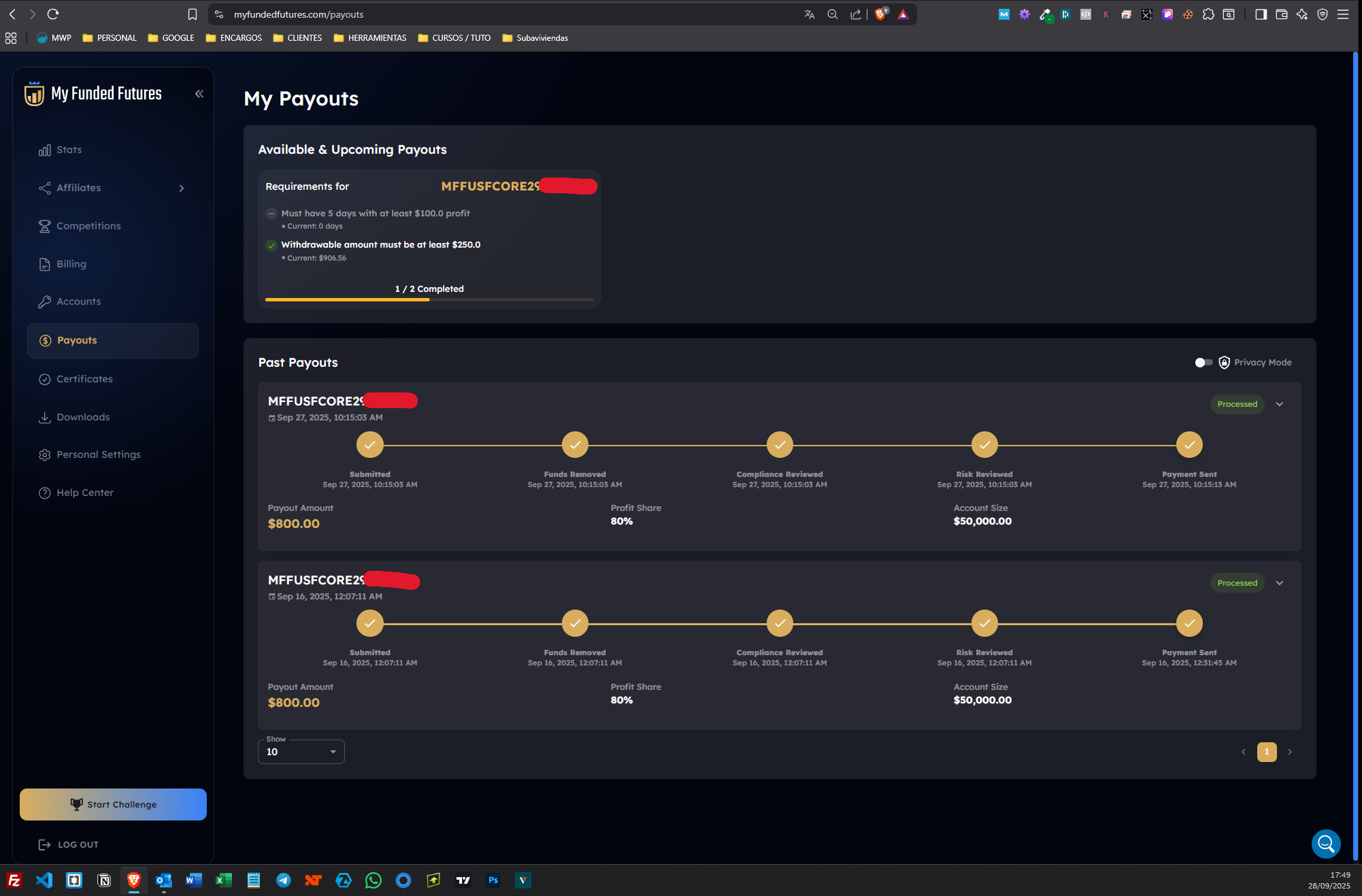 En la galería de imágenes más arriba puedes ver justificante de pagos recibidos por el instructor de distintas empresas de fondeo.